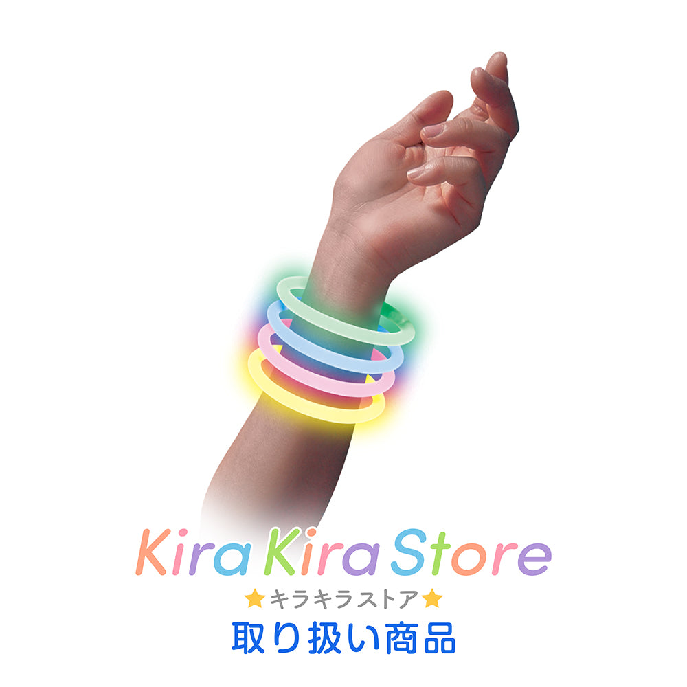【メーカー正規品!】ポキっと曲げると光る、お祭りやイベントで超定番の光るブレスレット。 ブレスレットは1箱に同じ色が50本まとめて入っています。 ※本商品は使い切りです。 光るブレスレットの使い方 ① 両端を持ちます ② ポキッと鳴るまで軽く曲げます ③ よく振って全体を光らせる ④ 丸めてコネクターに差し込む ⑤ 着けてあげると簡単です ・同じ箇所を何度も曲げないでください ・急角度に曲げないでください ・使う直前にパッケージから出してください サイズ 直径6mm×長さ200mm輪っかにした時の内径約60mm 発光時間 約4〜6時間 商品仕様 1箱にブレスレット50本、コネクター50個...